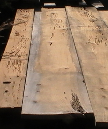 Pecky Cypress is the stuff the oldtimers used to throw away or used to build their barns.. today it is a sought after specialty lumber we mill from both sinker and tidewater logs..when we find it! Whether it is lightly "pecked" with a few small hollows or heavy "peck", it will make an impresion! The "peck" comes from a type of fungus that eats out portions of a log's interior.. you never know whether a tree has it until its cut, and only milling can show how much peck is in any given board. It is generally used for paneling and furniture. Click